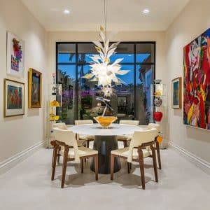 Long time clients who are “empty nesters” downsized from a larger house to this new condominium, designed to showcase their small yet impressive collection of modern art. The space plan, high ceilings, and careful consideration of materials lends their residence a quiet air of sophistication without pretention. Existing furnishings nearly 30 years old were slightly modified and reupholstered to work in the new residence, which proved both economical and comforting