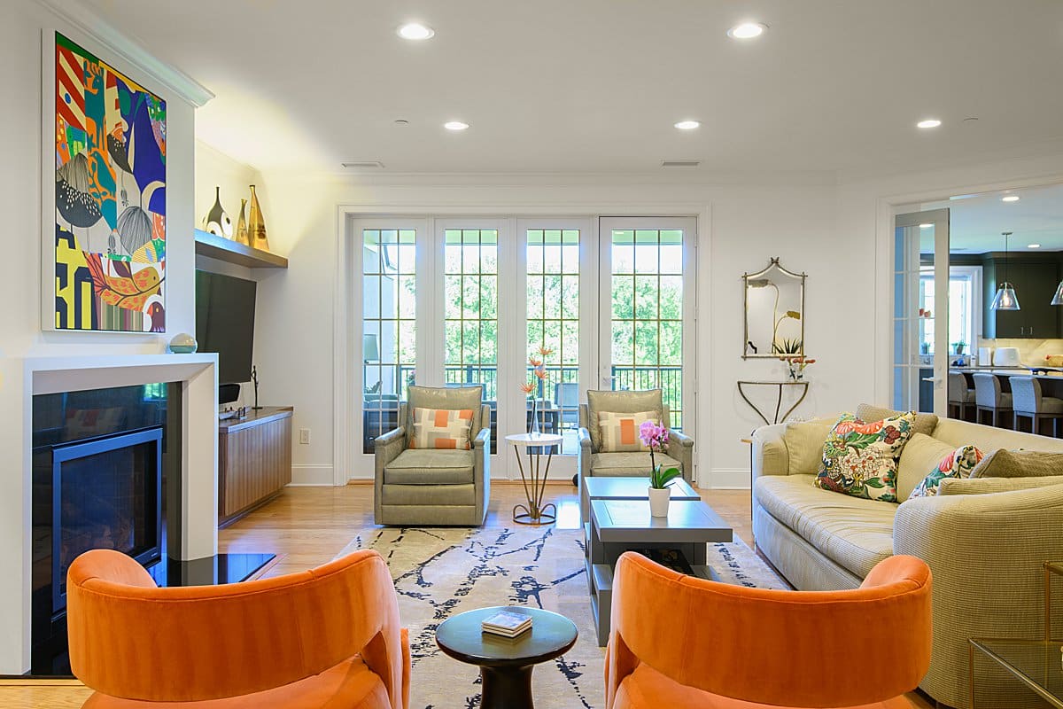 This suburban condominium on Philadelphia’s Main Line was designed for empty nesters who had collected beautiful custom furniture over the years. Downsizing from their previous location into a 3,000 square foot new construction condominium required that all material selections be made, as well as interior space planning changes, lighting design, kitchen and bathroom design, custom built-ins, custom area rugs, closet design, and window treatments. The clients’ style was contemporary and eclectic and new furnishings and elements were added as needed to fill in the space and complement their existing collection.